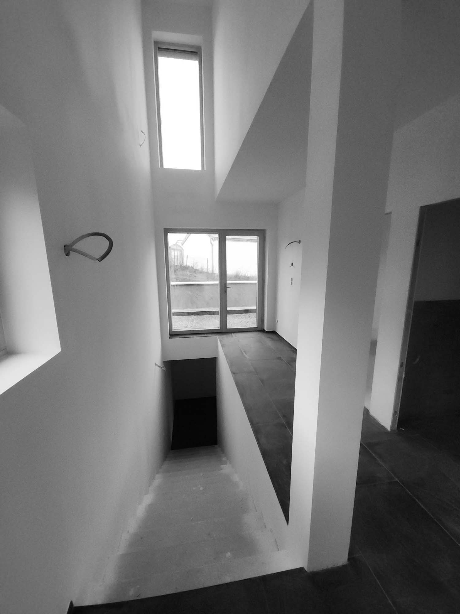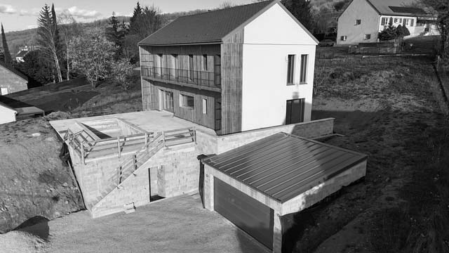 Béton cellulaire, menuiseries triple vitrage et traitement de l’étanchéité à l’air afin d’atteindre un haut niveau de performance, conforme aux principes de la maison passive.